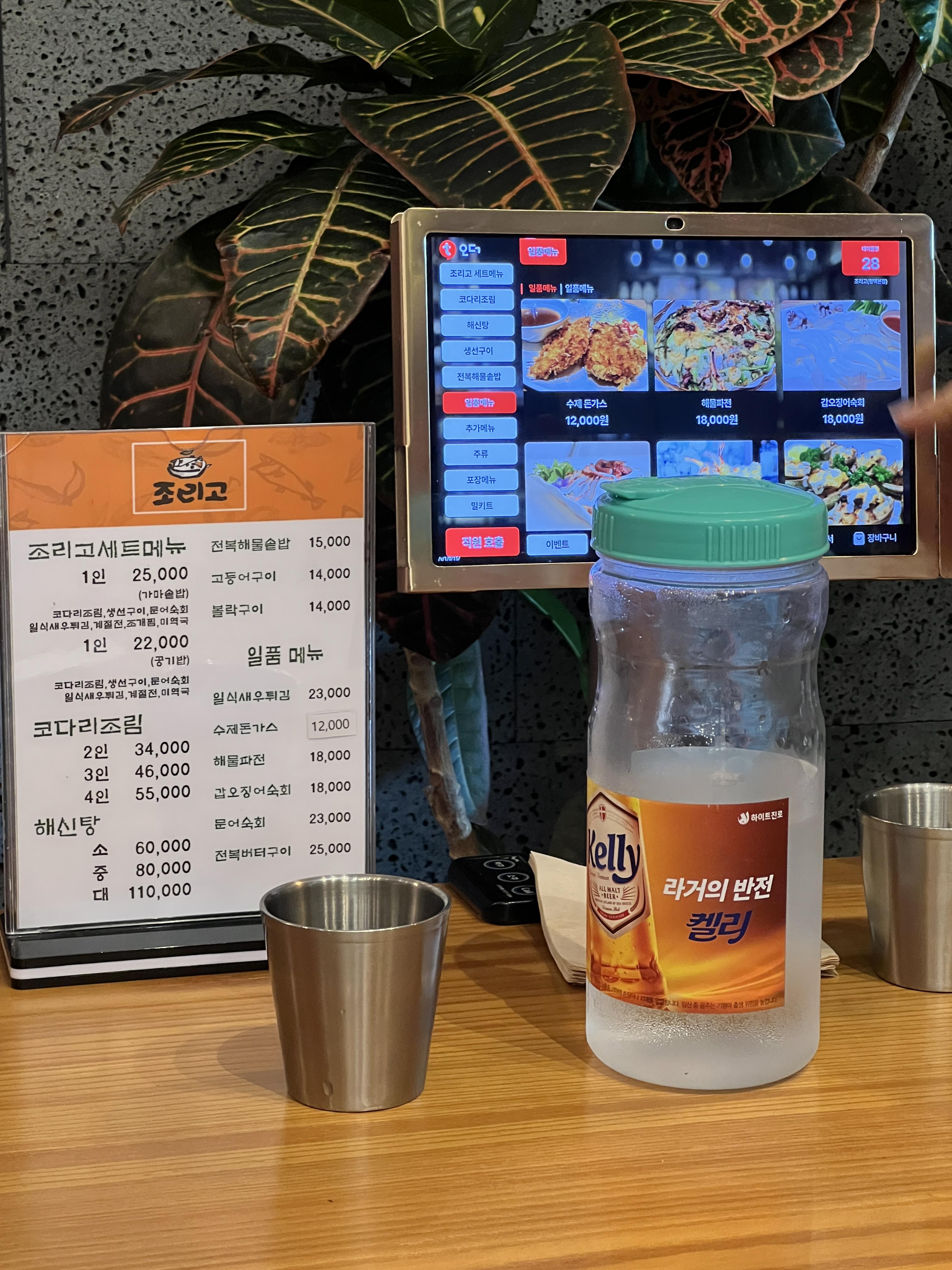저희는 코다리 4인 /55,000에 해물파전 /18,000 그리고 가마솥밥 5개/15,000 주문했답니다. 주문은 테이블에 있는 오더시스템으로 주문 가능해요 :) 그리고 1인당 1메뉴는 필수라고 하네요. 저희 엄마가 배불러서 5명이서 4인만 시켰더니 안된다고 딱 ! 말씀하시더라고요. 그래서 추가로 해물파전 주문했습니다.