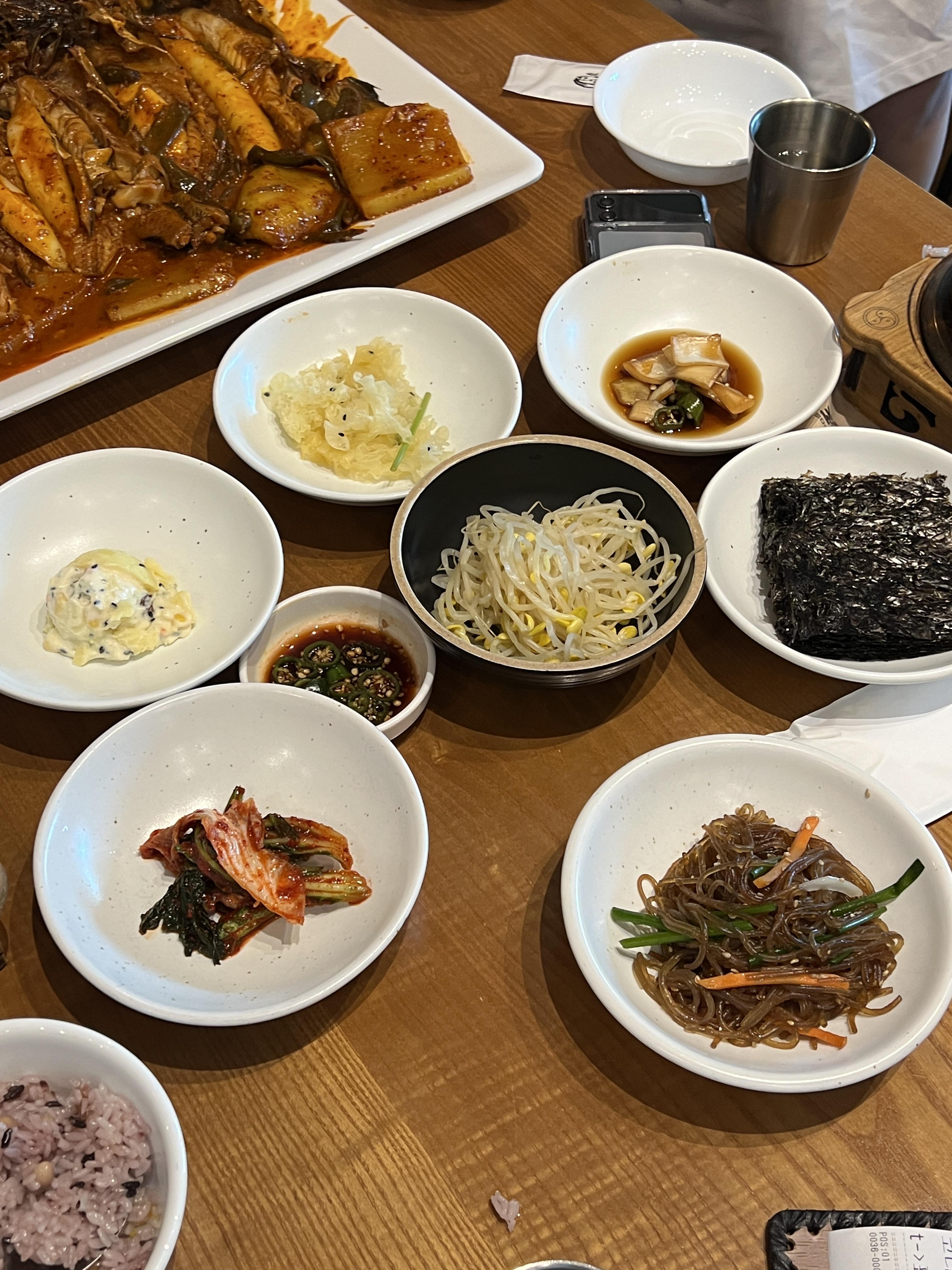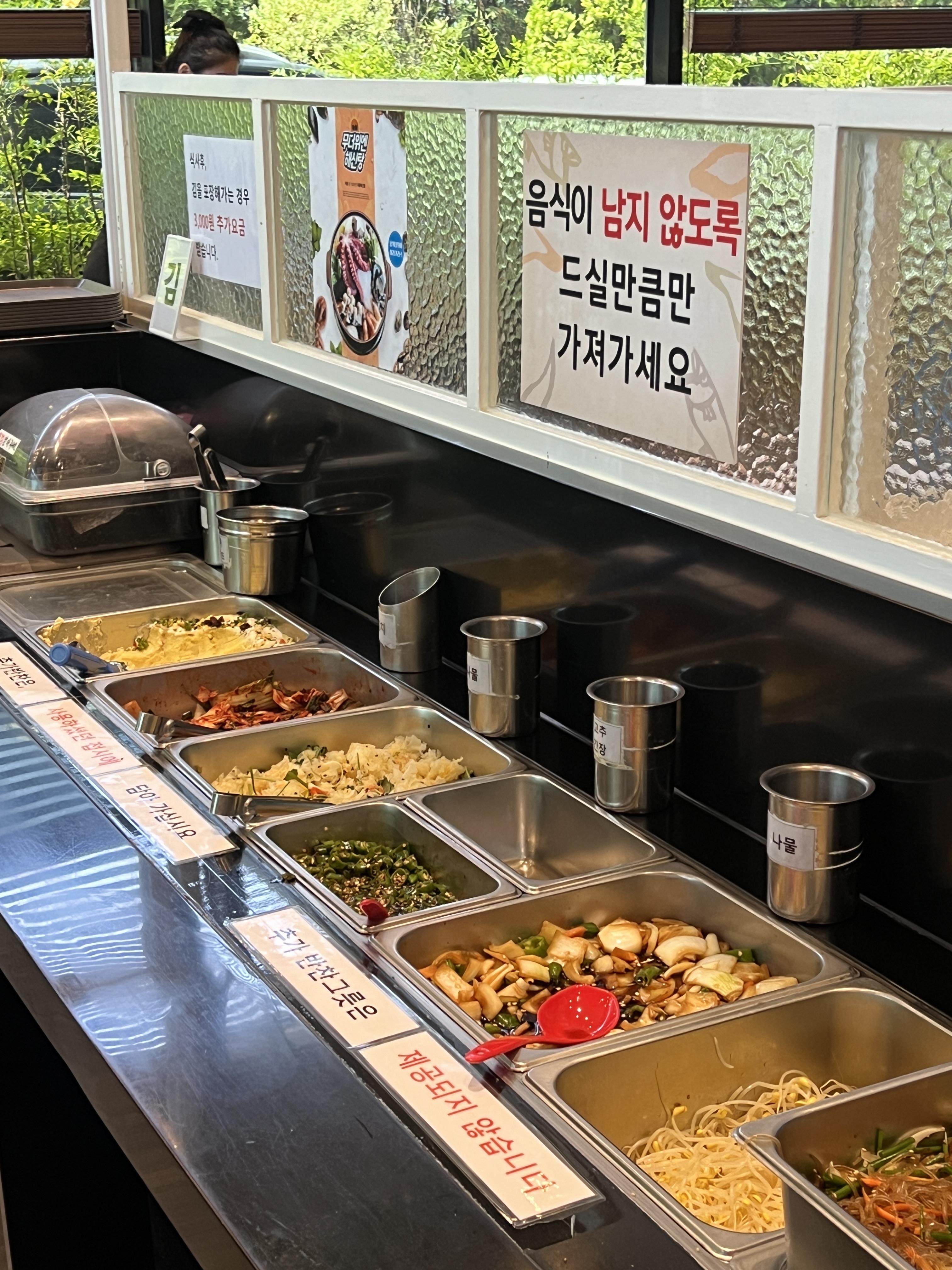 첫 반찬은 가져다주는데, 두번째 반찬부터는 셀프로 가져다 먹어야해요! 더 달라고하는것보다 요즘엔 이런게 눈치안보이고 더 좋더라고요 :)