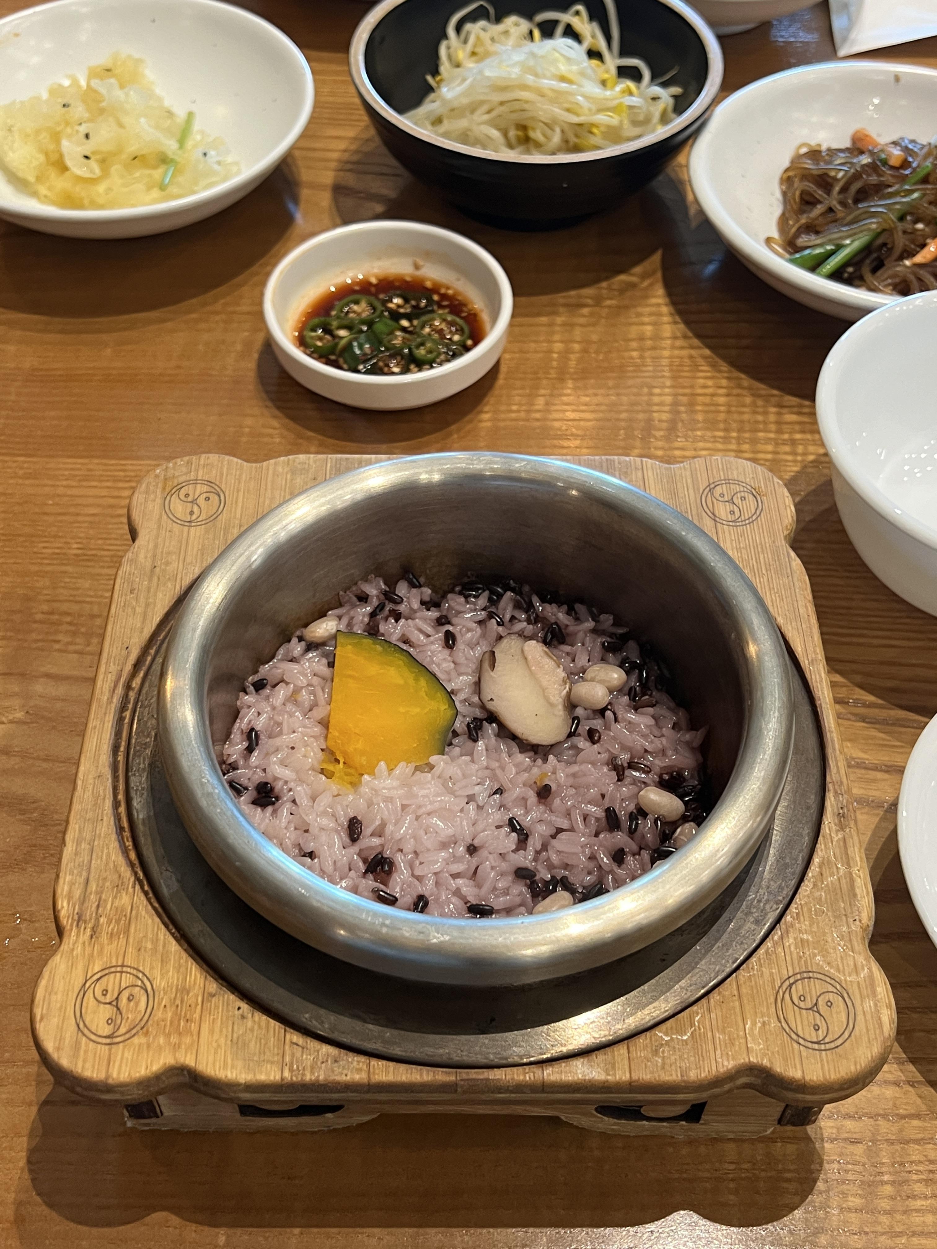영양만점 단호박과 버섯도 들어있고, 솥밥이라 그런지 밥이 더 맛있긴 하더라고요. 제대로 드시려면 가마솥밥 추천드려요. 끝에 먹는 누룽지도 맛있으니까요!
